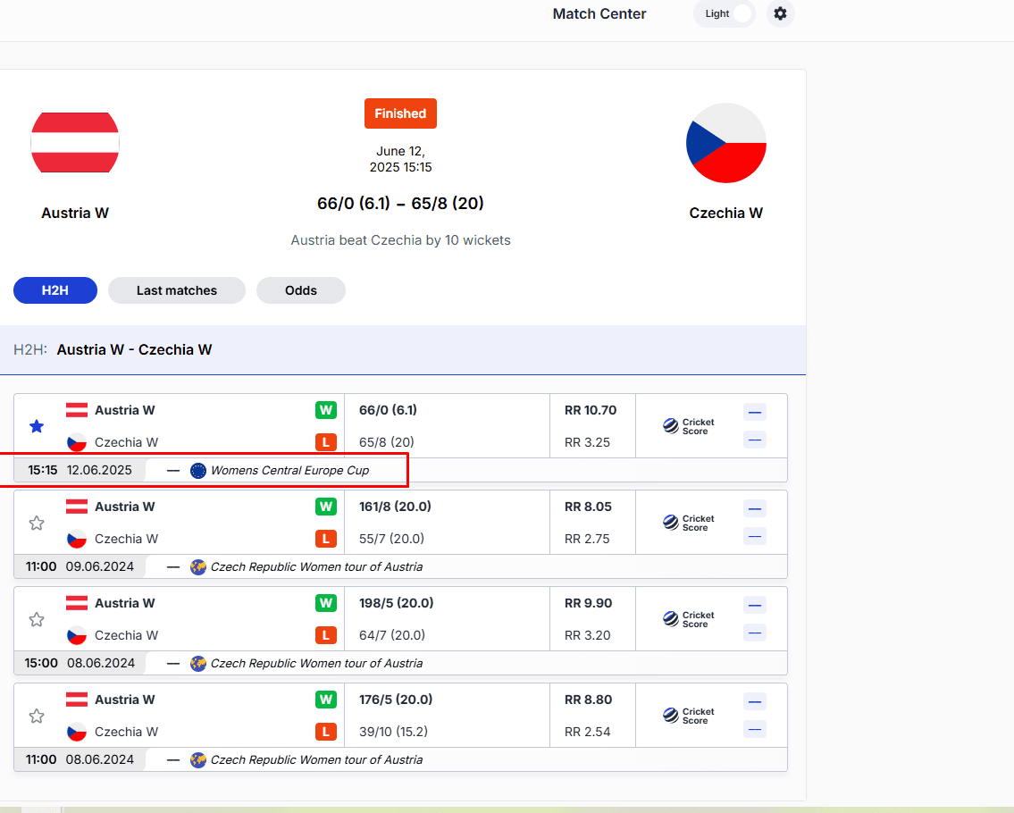 Live cricket score, schedule and match results